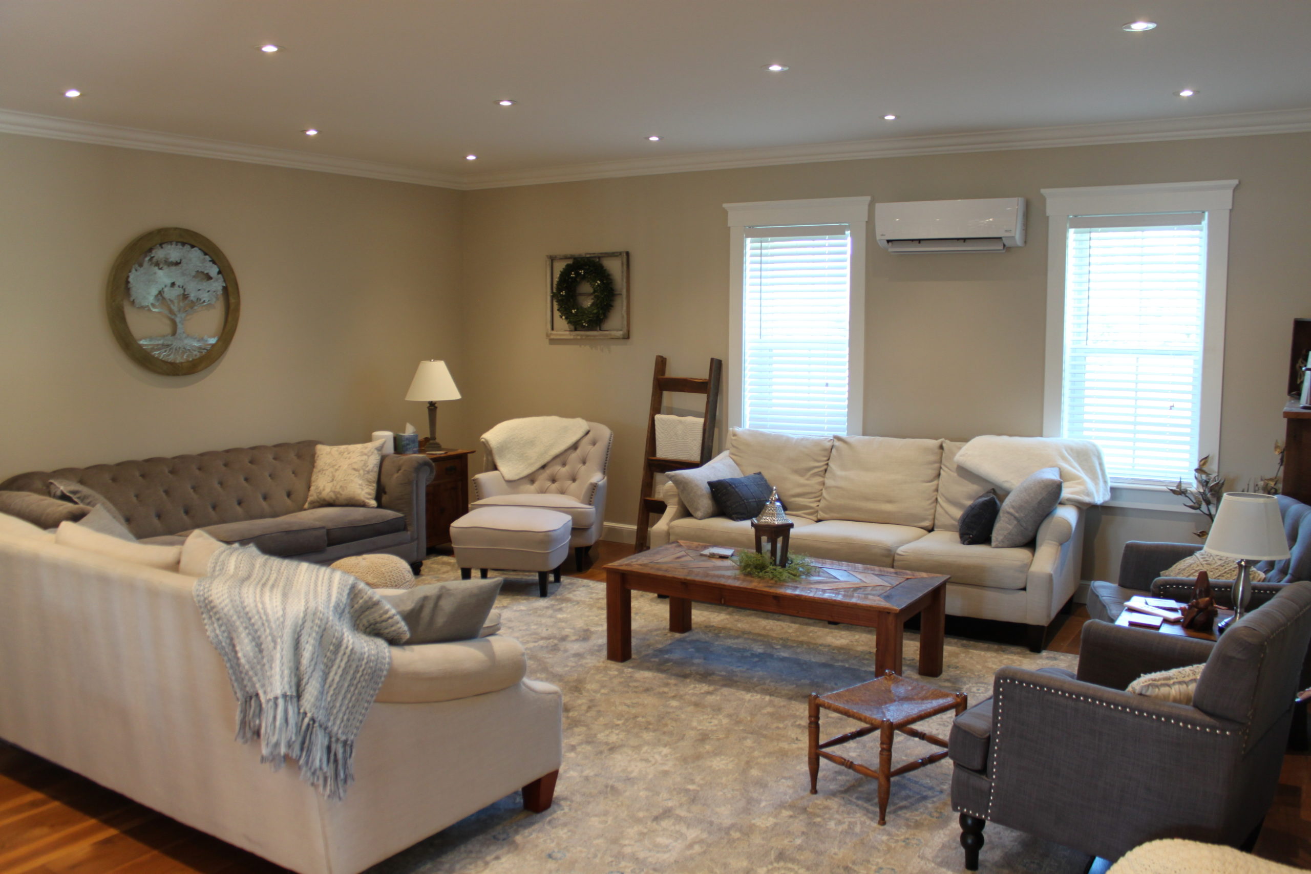 Country farm experience meets luxury living in our beautifully furnished guest house located right on the historic 180-acre Dewing family farm property. Our guest house features 4 bedrooms, 4.5 bathrooms, and a beautiful attic living sleeping space perfect for kids. Come experience a luxurious country retreat. With over 4,500 sq/ft of living space, our guest house is perfect for your next country-barn wedding, birthday, or any kind of family celebration.