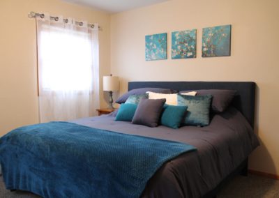 Moore House is situated on 20 acres. The nearest neighbor to the West is Timbers Cottage down over the knoll and across the road, about ¼ mile away, and to the East about ½ mile over the hill, so it truly offers a private hilltop stay. The master bedroom has a king bed and the second bedroom has a queen bed.